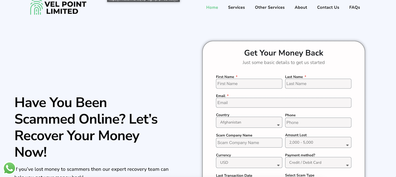 When service terms are vague, the financial risk is unfairly shifted onto the client. Prospective users must ask: What is the mechanism by which Velpoint.org guarantees that the costs associated with the service will not erode the entirety of any recovery or successful resolution? A detailed, itemized breakdown of costs, independent of marketing materials, is imperative. We recommend that any individual considering engaging with Velpoint.org demand a complete, non-negotiable schedule of potential costs and service expenses before signing any contract. The current opacity around pricing at Velpoint.org demands significant caution.